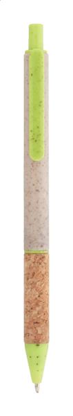 Ekologiczny plastikowy długopis ze słomy pszenicznej z uchwytem z naturalnego korka i kolorowymi elementami. Z niebieskim wkładem