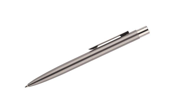 Długopis DELOX prezentuje się niezwykle elegancko. Wykonany z recyklingowanej stali nierdzewnej. Wkład w kolorze niebieskim.