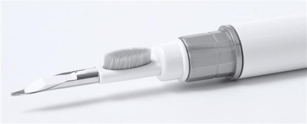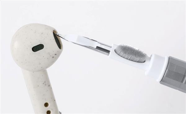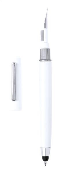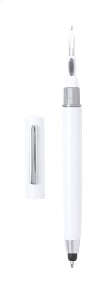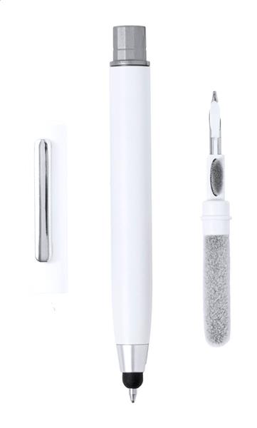 Przekręcany długopis z tworzywa ABS i z końcówką do ekranów dotykowych z wbudowanym zestawem do czyszczenia słuchawek. Z niebieskim wkładem.