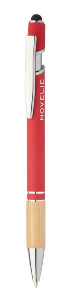 Aluminiowy długopis z końcówką do ekranów dotykowych, z bambusowym uchwytem i gumowanym wykończeniem. Ze specjalną powłoką pod grawer lustrzany. Z niebieskim wkładem.