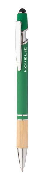Aluminiowy długopis z końcówką do ekranów dotykowych, z bambusowym uchwytem i gumowanym wykończeniem. Ze specjalną powłoką pod grawer lustrzany. Z niebieskim wkładem.