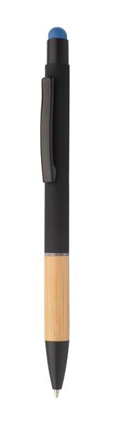 Aluminiowy długopis z końcówką do ekranów dotykowych z bambusowym uchwytem i gumowanym wykończeniem. Ze specjalną powłoką pod grawer lustrzany, dopasowanym kolorystycznie do koloru gumki. Z niebieskim wkładem.