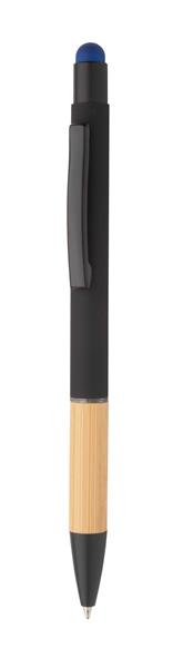 Aluminiowy długopis z końcówką do ekranów dotykowych z bambusowym uchwytem i gumowanym wykończeniem. Ze specjalną powłoką pod grawer lustrzany, dopasowanym kolorystycznie do koloru gumki. Z niebieskim wkładem.