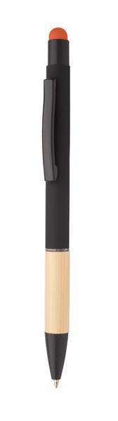 Aluminiowy długopis z końcówką do ekranów dotykowych z bambusowym uchwytem i gumowanym wykończeniem. Ze specjalną powłoką pod grawer lustrzany, dopasowanym kolorystycznie do koloru gumki. Z niebieskim wkładem.