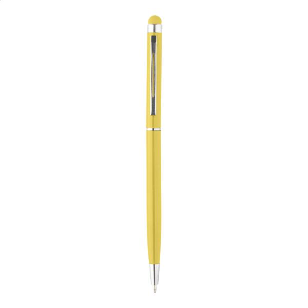 Aluminiowy długopis z końcówką do ekranów dotykowych. Kolorowy korpus z pasującą końcówką. Zawiera niebieski wkład.