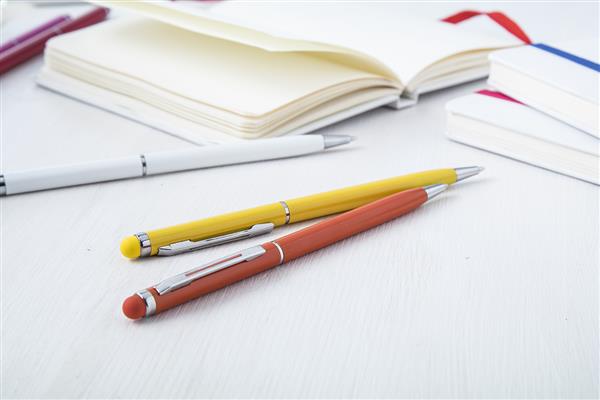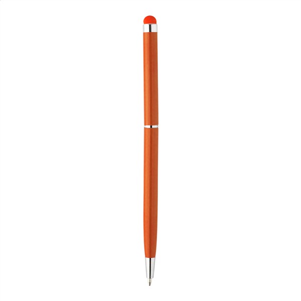 Aluminiowy długopis z końcówką do ekranów dotykowych. Kolorowy korpus z pasującą końcówką. Zawiera niebieski wkład.