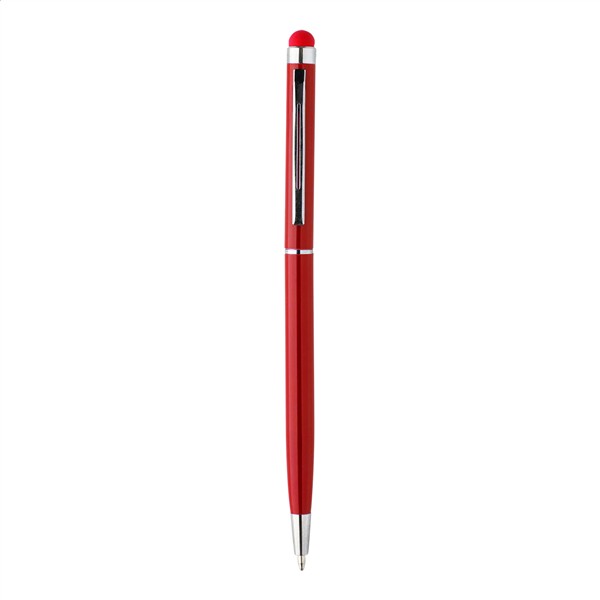 Aluminiowy długopis z końcówką do ekranów dotykowych. Kolorowy korpus z pasującą końcówką. Zawiera niebieski wkład.