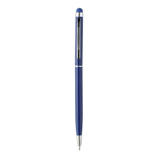 Aluminiowy długopis z końcówką do ekranów dotykowych. Kolorowy korpus z pasującą końcówką. Zawiera niebieski wkład.