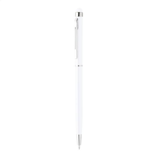 Aluminiowy długopis z końcówką do ekranów dotykowych. Kolorowy korpus z pasującą końcówką. Zawiera niebieski wkład.