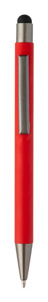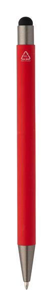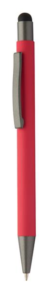 Długopis z recyklingowanego aluminium z końcówką do ekranów dotykowych z gumowanym korpusem i elementami w kolorze gunmetal. Z niebieskim wkładem.
