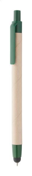 Długopis z papieru z recyklingu z końcówką do ekranów dotykowych i kolorowymi elementami. Z niebieskim wkładem.