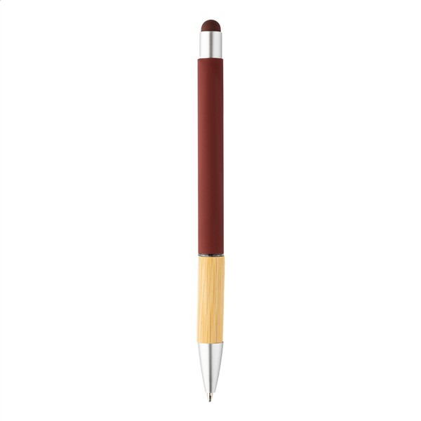 Aluminiowy długopis z końcówką do ekranów dotykowych, z bambusowym uchwytem i matowym wykończeniem. Z niebieskim wkładem.