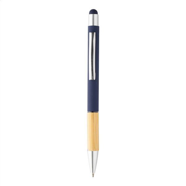 Aluminiowy długopis z końcówką do ekranów dotykowych, z bambusowym uchwytem i matowym wykończeniem. Z niebieskim wkładem.