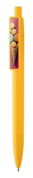 Description: Plastikowy długopis z niebieskim wkładem. Klip specjalnie przygotowany pod epoxy lub nadruk UV. Biały klips dostarczany osobno przy zamówieniu bez nadruku. Primary Color: żółty Material 1: Plastik (ABS) Rozmiar: o10×136 mm Rodzaj długopisy: Długopis Rodzaj mechanizmu: wciskany Kolor wkładu: niebieski Rozmiar kulki we wkładzie: 1 mm Rodzaj wkładu: Normalny, wąski wkład