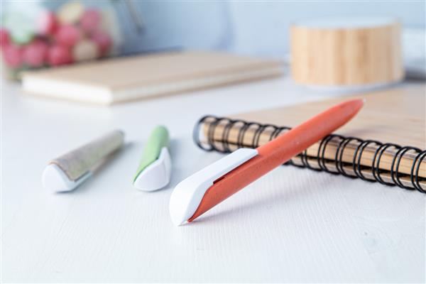 Description: Ekologiczny, plastikowy długopis ze słomy pszenicznej z białym klipem. Posiada niebieski wkład. Primary Color: pomarańcz Material 1: Słoma pszeniczna Material 2: Plastik (ABS) Rozmiar: o12×149 mm Rodzaj długopisy: Długopis Rodzaj mechanizmu: wciskany Kolor wkładu: niebieski