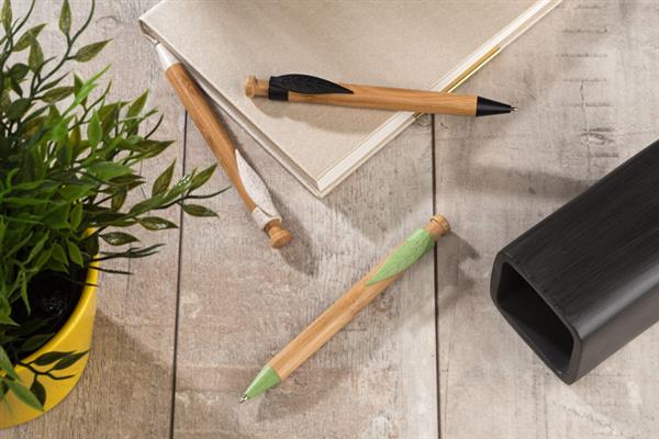 Długopis FOLL został wykonany z myślą o wszystkich, którym bliska jest idea używania naturalnych surowców. Korpus tego długopisu wykonany jest z naturalnego bambusa, a klip i końcówki z tworzywa wykonanego w 40% z naturalnej słomy. Do idei ochrony środowiska nawiązuje też klip w kształcie liścia. Długopis automatyczny. Wkład typu X20 w kolorze niebieskim