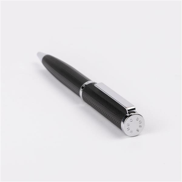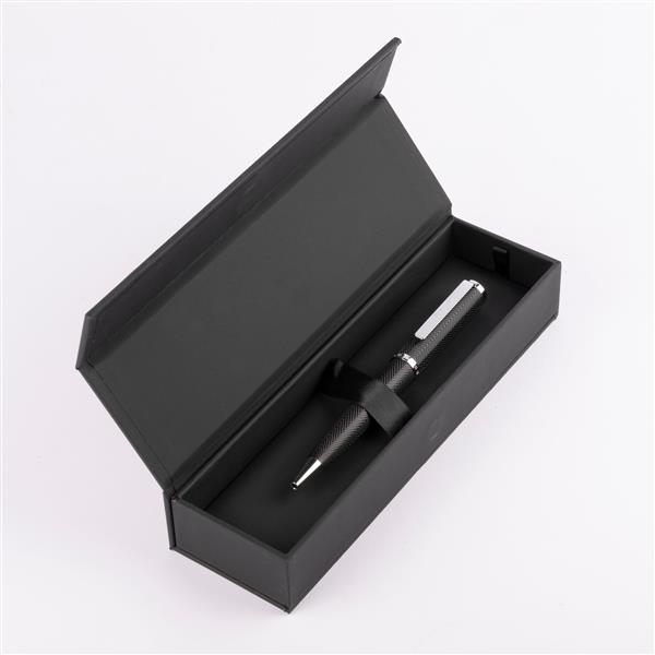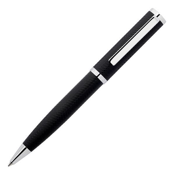 Długopis Herringbone jest ponadczasowo i elegancko wykonany z wyrafinowanym wzorem Herringbone, przypominającym garnitur domu mody. Ta nowa interpretcja kolekcji jest ozdobiona wyraźnymi chromowanymi akcentami. Rozmiar: Dia. 12 / h. 135 mm Kolor: Czarny