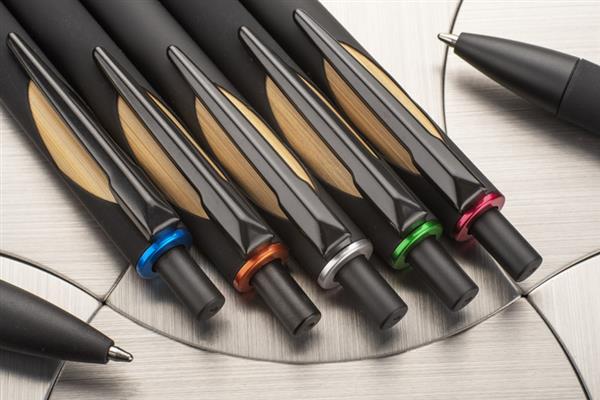 Długopis FRANK posiada przyjemną w dotyku powierzchnię soft touch. Bambusowy element wraz z metalicznym wykończeniem sprawiają, że długopis wygląda elegancko i nowocześnie.