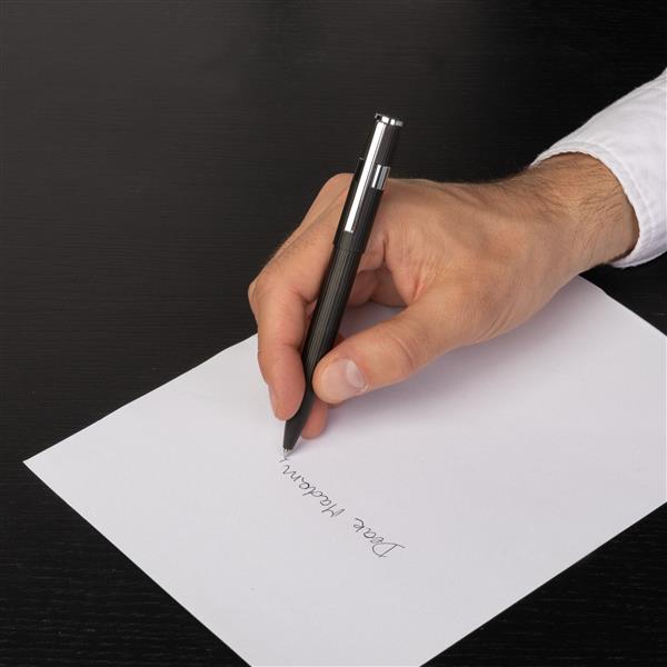 Nasza kultowa sylwetka Gear została ponownie odkryta, tym razem z wygrawerowanym wzorem inspirowanym pinstripes, charakterystycznym wzorem domu mody HUGO BOSS, przypominającym jego dziedzictwo garniturowe. Dzięki innowacyjnej obróbce powierzchni oraz kontrastującemu, polerowanemu pierścieniowi z logo umieszczonemu na górnej części korpusu, nadruk został wykonany na nowo. Ta czarno-chromowana wersja jest elegancka i oszczędna.