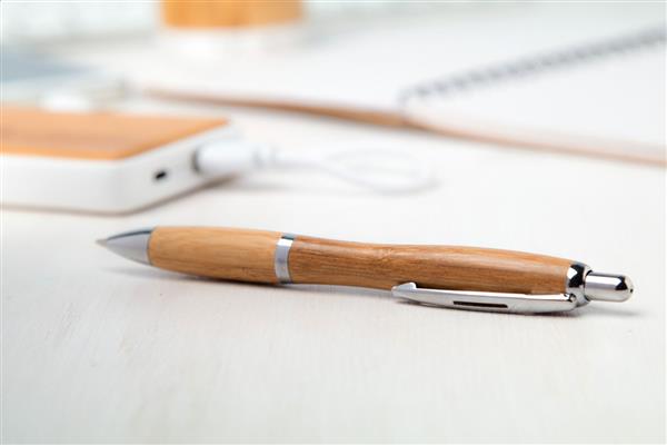 Długopis bambusowy z metalowym klipem. Z niebieskim wkładem.