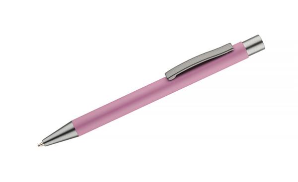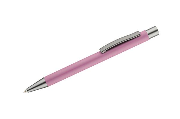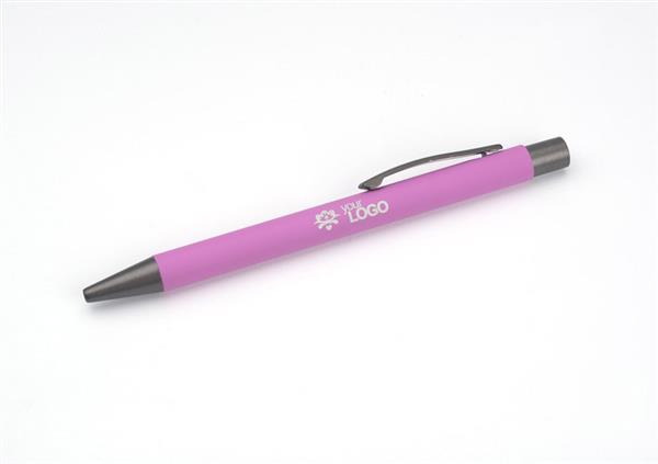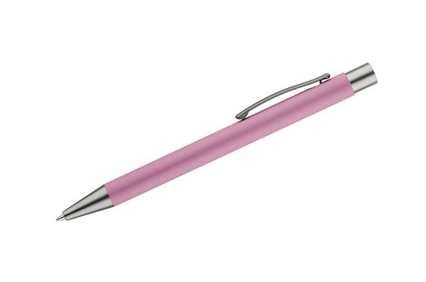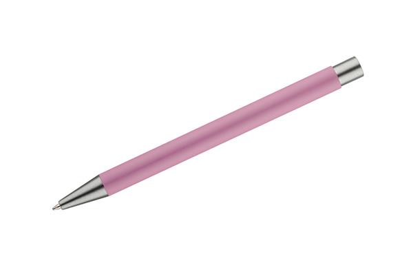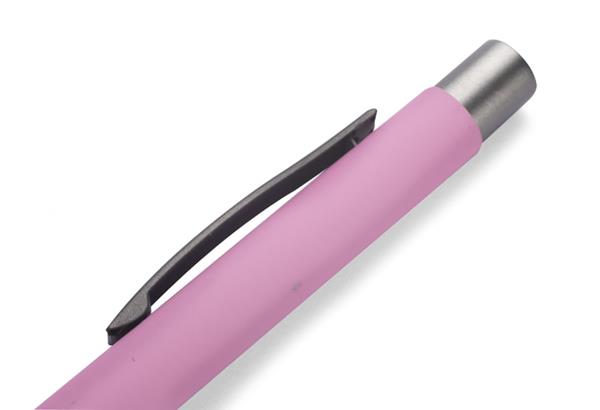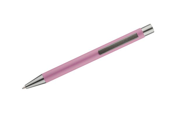 Długopis GOMA to prosty design połączony z przyjemna w dotyku gumowana powierzchnią. Całość jest utrzymana w lekkich, matowych barwach. Wykonany z aluminium. Wykończenia w kolorze grafitowym. Wkład w kolorze niebieskim.