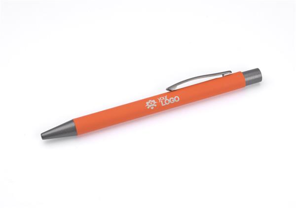 Długopis GOMA to prosty design połączony z przyjemna w dotyku gumowana powierzchnią. Całość jest utrzymana w lekkich, matowych barwach. Wykonany z aluminium. Wykończenia w kolorze grafitowym. Wkład w kolorze niebieskim.