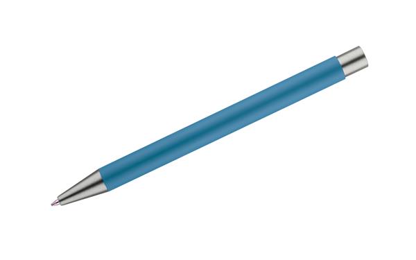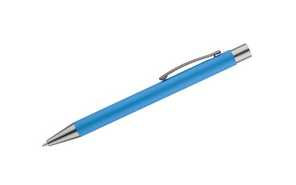 Długopis GOMA to prosty design połączony z przyjemna w dotyku gumowana powierzchnią. Całość jest utrzymana w lekkich, matowych barwach. Wykonany z aluminium. Wykończenia w kolorze grafitowym. Wkład w kolorze niebieskim.
