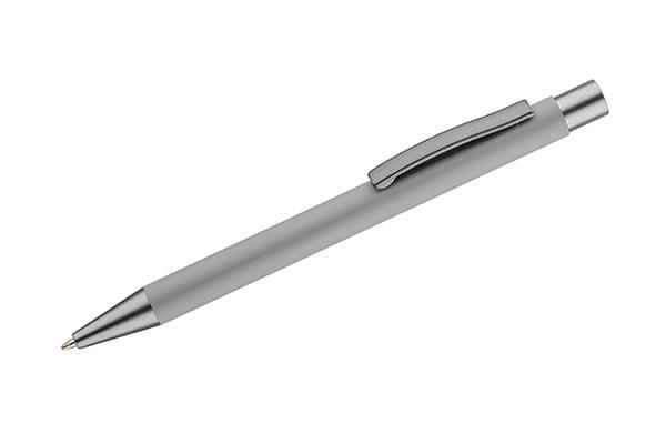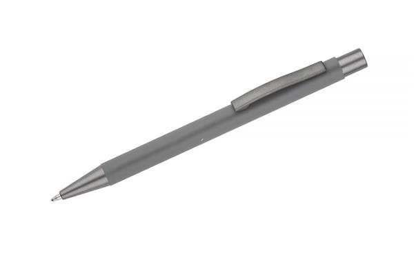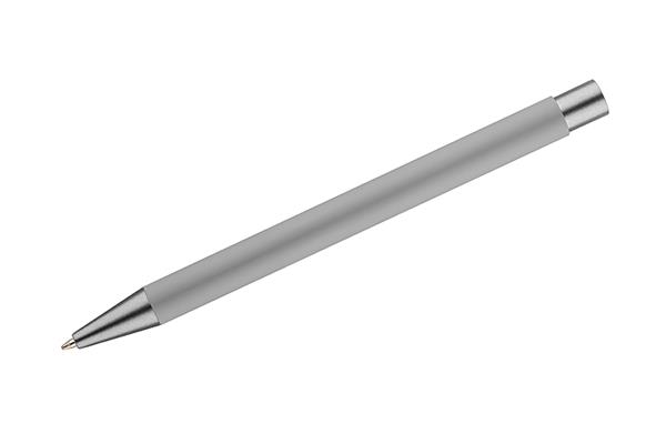 Długopis GOMA to prosty design połączony z przyjemną w dotyku gumowaną powierzchnią. Całość jest utrzymana w lekkich, matowych barwach. Wykonany z aluminium. Wykończenia w kolorze grafitowym. Wkład w kolorze czarnym.