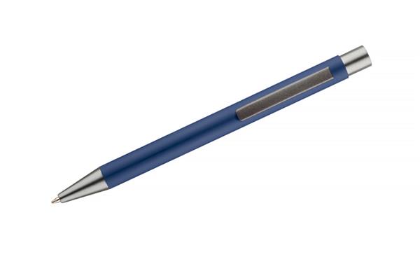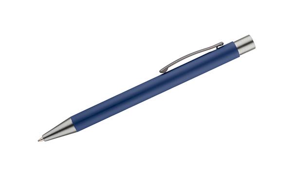 Długopis GOMA to prosty design połączony z przyjemną w dotyku gumowaną powierzchnią. Całość jest utrzymana w lekkich, matowych barwach. Wykonany z aluminium. Wykończenia w kolorze grafitowym. Wkład w kolorze czarnym.