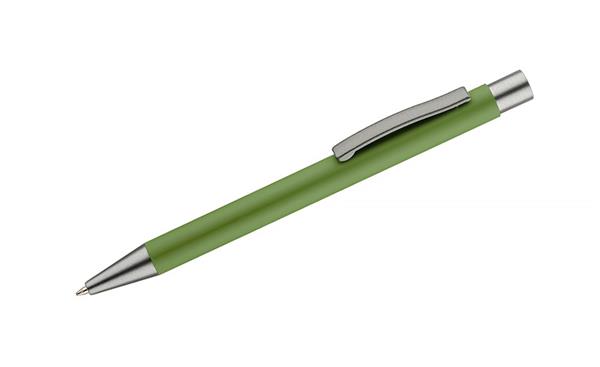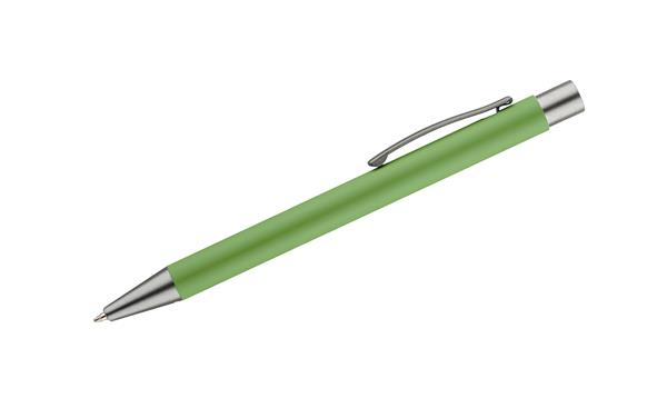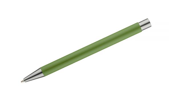 Długopis GOMA to prosty design połączony z przyjemną w dotyku gumowaną powierzchnią. Całość jest utrzymana w lekkich, matowych barwach. Wykonany z aluminium. Wykończenia w kolorze grafitowym. Wkład w kolorze czarnym.