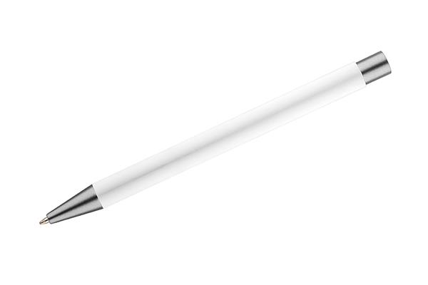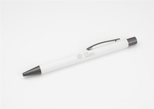 Długopis GOMA to prosty design połączony z przyjemną w dotyku gumowaną powierzchnią. Całość jest utrzymana w lekkich, matowych barwach. Wykonany z aluminium. Wykończenia w kolorze grafitowym. Wkład w kolorze czarnym.