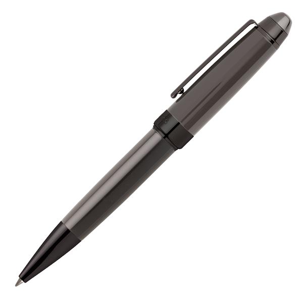 Długopis o klasycznym kształcie i eleganckiej ramce dostępny w ekskluzywnych ciemnoszarych odcieniach. Piękne zdobienia i subtelny połysk sprawiają, że długopis jest prawie monochromatyczny z ciemnymi, chromowanymi wykończeniami, który nadaje mu stylowy i minimalistyczny wygląd. Produkt jest dostępny jako pióro wieczne, pióro kulkowe i długopis.
