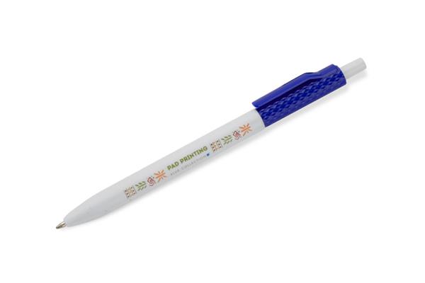 Długopis KARBI wykonany jest z tworzywa i wykończony błyszczącym lakierem. Jego charakterystycznym elementem jest karbowana struktura górnej części korpusu oraz klip w tym samym kolorze, tworzące spójną całość. Mechanizm automatyczny zapewnia wygodę użytkowania, a wkład typu X20 o grubości pisania 1,0 mm gwarantuje płynny zapis. Prosty i nowoczesny design sprawia, że KARBI to praktyczny gadżet reklamowy, idealny do codziennego użytku i znakowania logo.