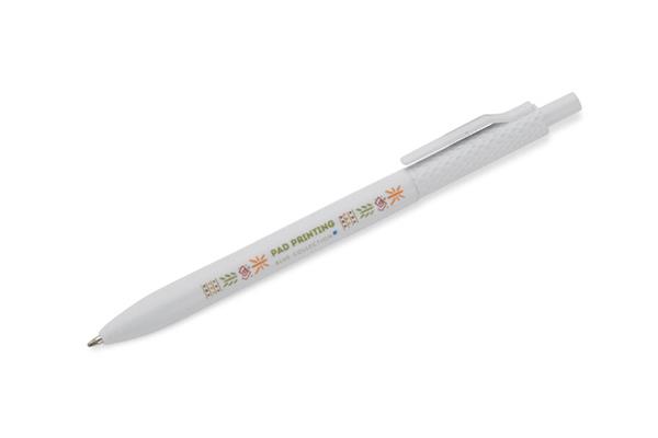 Długopis KARBI wykonany jest z tworzywa i wykończony błyszczącym lakierem. Jego charakterystycznym elementem jest karbowana struktura górnej części korpusu oraz klip w tym samym kolorze, tworzące spójną całość. Mechanizm automatyczny zapewnia wygodę użytkowania, a wkład typu X20 o grubości pisania 1,0 mm gwarantuje płynny zapis. Prosty i nowoczesny design sprawia, że KARBI to praktyczny gadżet reklamowy, idealny do codziennego użytku i znakowania logo.