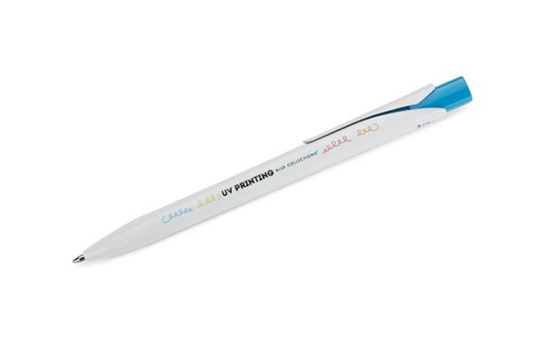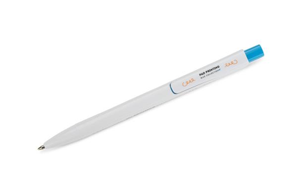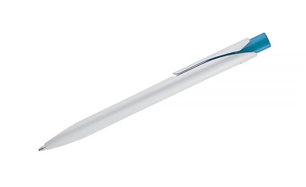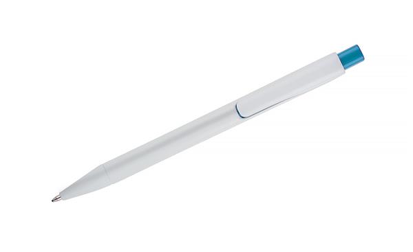 Długopis KLIBO wykonany jest z tworzywa rABS w klasycznym białym kolorze, z lakierowanym wykończeniem. Wyróżnia go kwadratowy, kolorowy przycisk oraz wąski, płaski klip, który pewnie trzyma się dokumentów i notesów. Mechanizm automatyczny zapewnia wygodne użytkowanie, a wkład typu G2 o grubości pisania 1,0 mm gwarantuje płynny i równy zapis. Lekka konstrukcja i nowoczesna forma sprawiają, że KLIBO to praktyczny gadżet reklamowy do codziennego użytku.