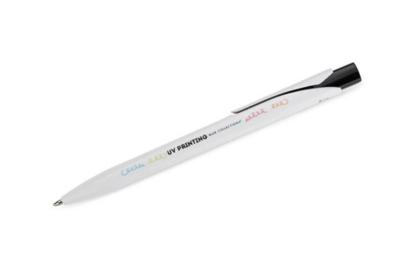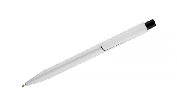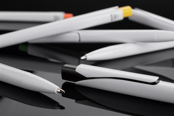 Długopis KLIBO wykonany jest z tworzywa rABS w klasycznym białym kolorze, z lakierowanym wykończeniem. Wyróżnia go kwadratowy, kolorowy przycisk oraz wąski, płaski klip, który pewnie trzyma się dokumentów i notesów. Mechanizm automatyczny zapewnia wygodne użytkowanie, a wkład typu G2 o grubości pisania 1,0 mm gwarantuje płynny i równy zapis. Lekka konstrukcja i nowoczesna forma sprawiają, że KLIBO to praktyczny gadżet reklamowy do codziennego użytku.