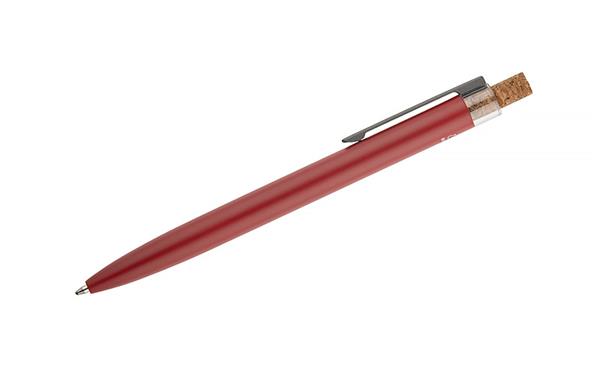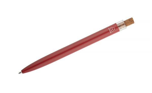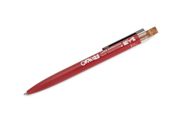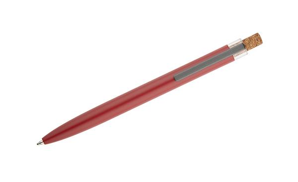 Długopis KORIN wykonany jest z recyklingowanego aluminium i pokryty lakierowanym wykończeniem, które nadaje mu gładką, satynową powierzchnię. Wyposażony w automatyczny mechanizm, wkład typu G2 o grubości pisania 1,0 mm oraz metalowy klips w kolorze grafitowym. Korkowy przycisk stanowi ciekawy akcent, podkreślający nowoczesny charakter długopisu. KORIN jest lekki, solidny i wygodny w codziennym użytkowaniu.