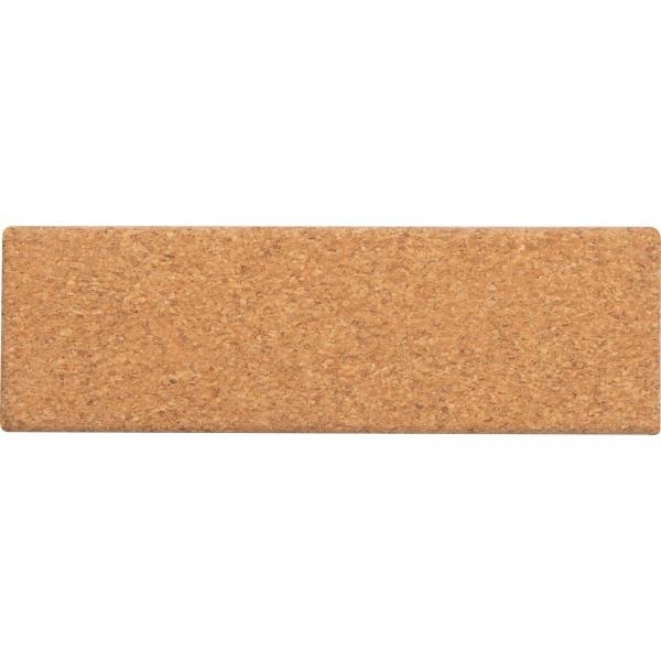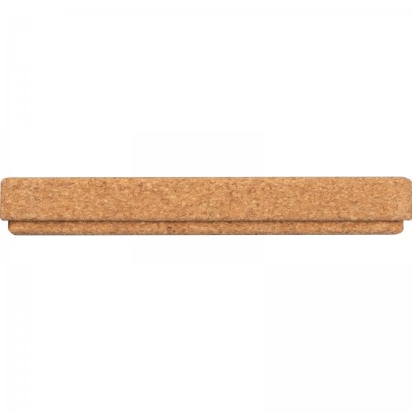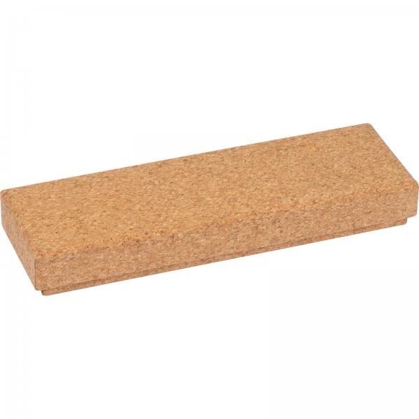 Elegancki długopis wykonany z korka z metalowymi elementami. Długopis posiada niebieski wkład, zapakowany jest w korkowe etui.
