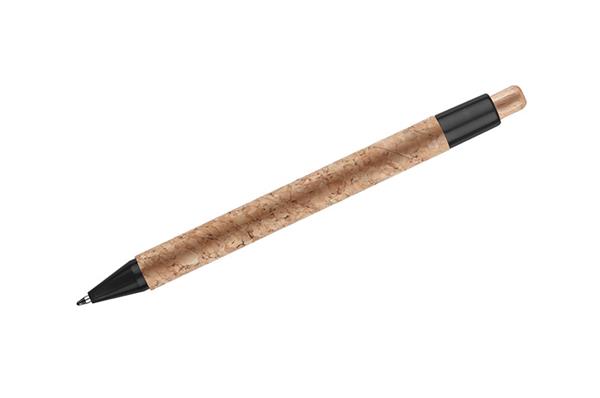 Długopis KORTE nawiązuje swoim wyglądem do idei recyclingu. Korpus został wykonany z naturalnego korka, a przycisk z drewna. Wykończenia z tworzywa sztucznego w żywych kolorach dodają mu uroku. Wkład w kolorze niebieskim.