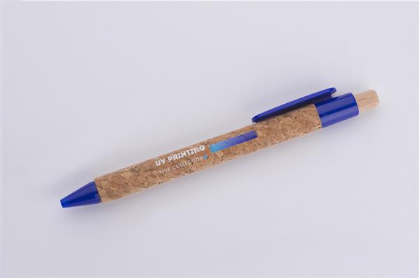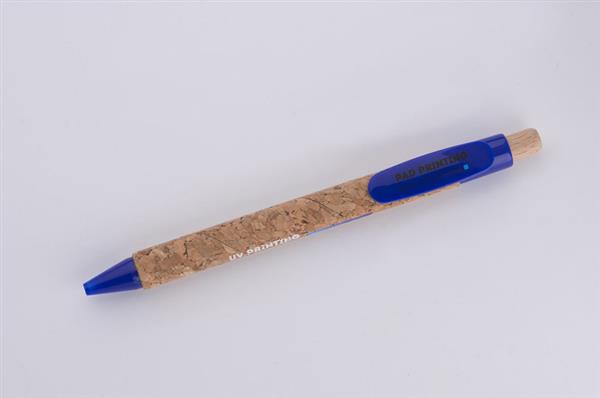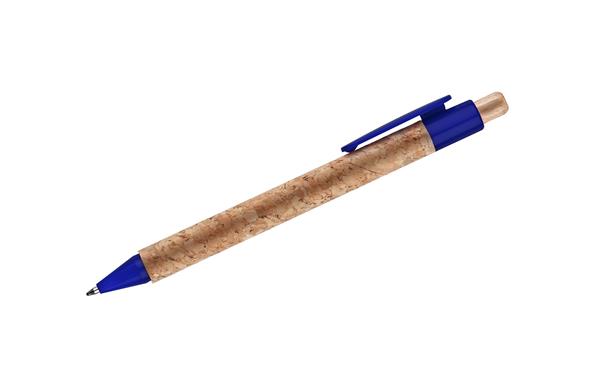 Długopis KORTE nawiązuje swoim wyglądem do idei recyclingu. Korpus został wykonany z naturalnego korka, a przycisk z drewna. Wykończenia z tworzywa sztucznego w żywych kolorach dodają mu uroku. Wkład w kolorze niebieskim.