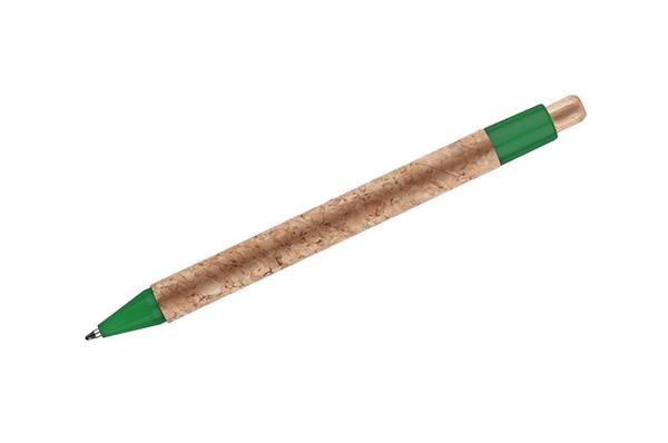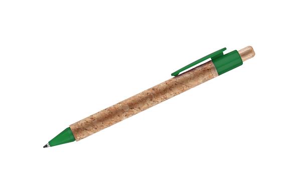 Długopis KORTE nawiązuje swoim wyglądem do idei recyclingu. Korpus został wykonany z naturalnego korka, a przycisk z drewna. Wykończenia z tworzywa sztucznego w żywych kolorach dodają mu uroku. Wkład w kolorze niebieskim.