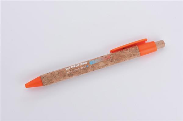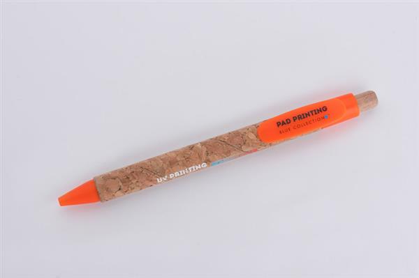 Długopis KORTE nawiązuje swoim wyglądem do idei recyclingu. Korpus został wykonany z naturalnego korka, a przycisk z drewna. Wykończenia z tworzywa sztucznego w żywych kolorach dodają mu uroku. Wkład w kolorze niebieskim.
