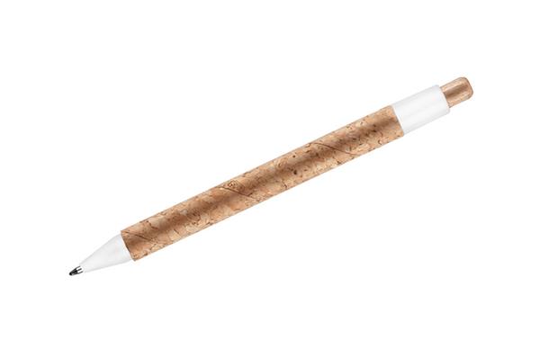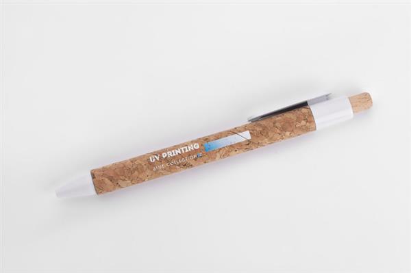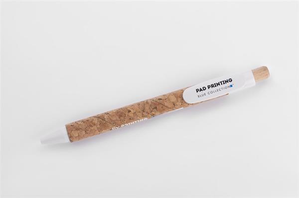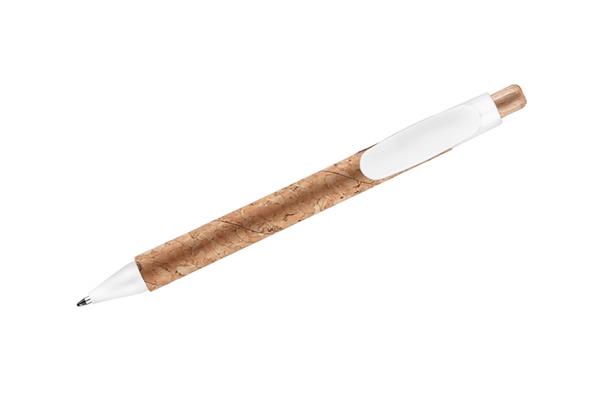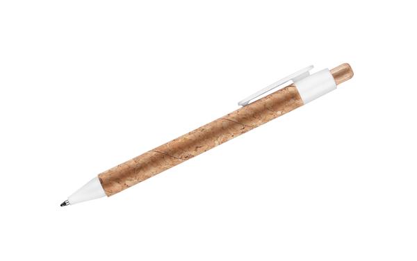 Długopis KORTE nawiązuje swoim wyglądem do idei recyclingu. Korpus został wykonany z naturalnego korka, a przycisk z drewna. Wykończenia z tworzywa sztucznego w żywych kolorach dodają mu uroku. Wkład w kolorze niebieskim.
