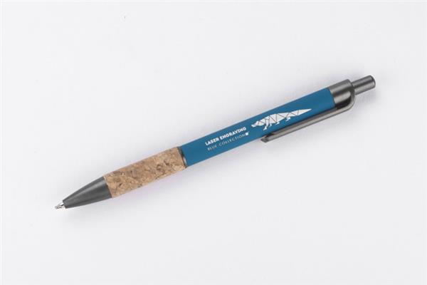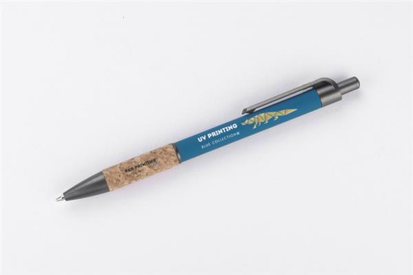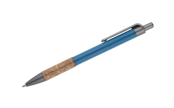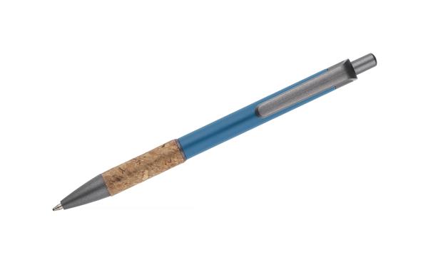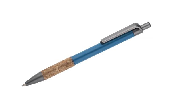Długopis KUBOD to klasyczny model o prostym, eleganckim kształcie, idealny do znakowania. Aluminiowy korpus pokryty został matową powłoką soft touch, która zwiększa komfort użytkowania. Naturalny korek w części chwytnej przyciąga uwagę i wyróżnia produkt na tle standardowych modeli. Metaliczne akcenty z tworzywa dodają całości nowoczesnego charakteru. Długopis posiada mechanizm automatyczny i jest wyposażony w niebieski wkład typu X20 (wymienny, niedostępny w naszej ofercie).