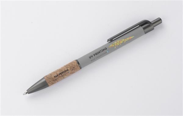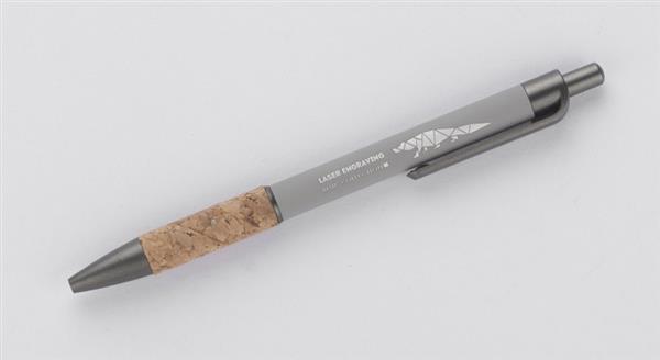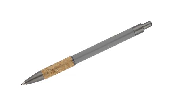 Długopis KUBOD to klasyczny model o prostym, eleganckim kształcie, idealny do znakowania. Aluminiowy korpus pokryty został matową powłoką soft touch, która zwiększa komfort użytkowania. Naturalny korek w części chwytnej przyciąga uwagę i wyróżnia produkt na tle standardowych modeli. Metaliczne akcenty z tworzywa dodają całości nowoczesnego charakteru. Długopis posiada mechanizm automatyczny i jest wyposażony w niebieski wkład typu X20 (wymienny, niedostępny w naszej ofercie).