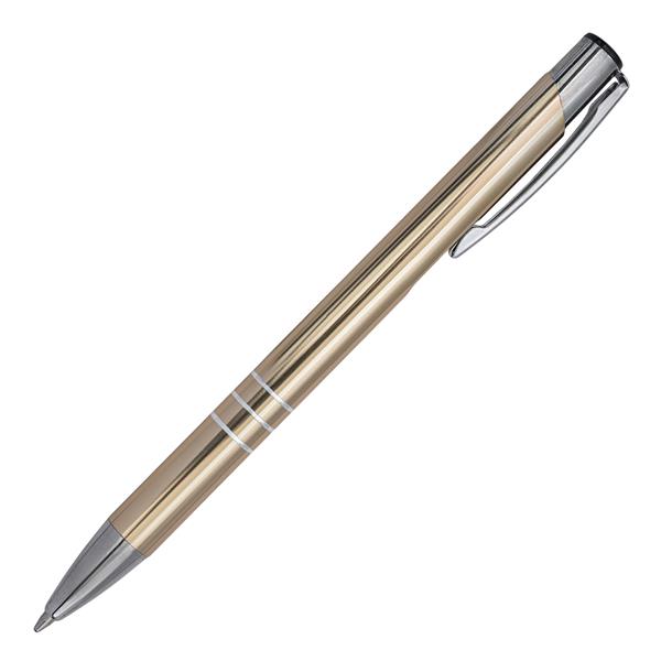 Długopis aluminiowy. Wyposażony w niebieski wkład.
