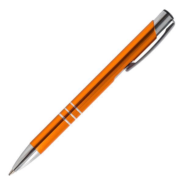 Długopis aluminiowy. Wyposażony w niebieski wkład.