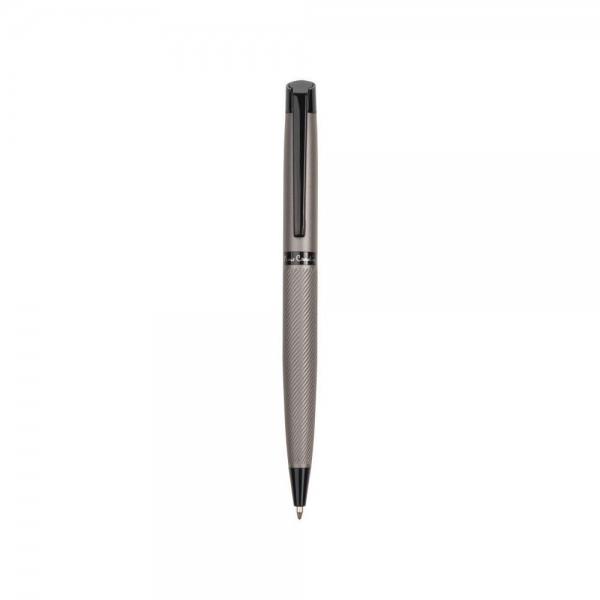 Elegancki metalowy długopis Pierre Cardin. Długopis posiada mechanizm obrotowy, a dolna część korpusu ozdobiona jest strukturalnym wzorem. Posiada wysokiej jakości niebieski wkład z końcówką 1 mm. Zapakowany w luksusową kieszeń, posiada certyfikat autentyczności. Rozmiar: 1,2 cm x 13,5 cm L2 (grawer laserowy): 3,5 x 0,7 cm Kolor: Szary