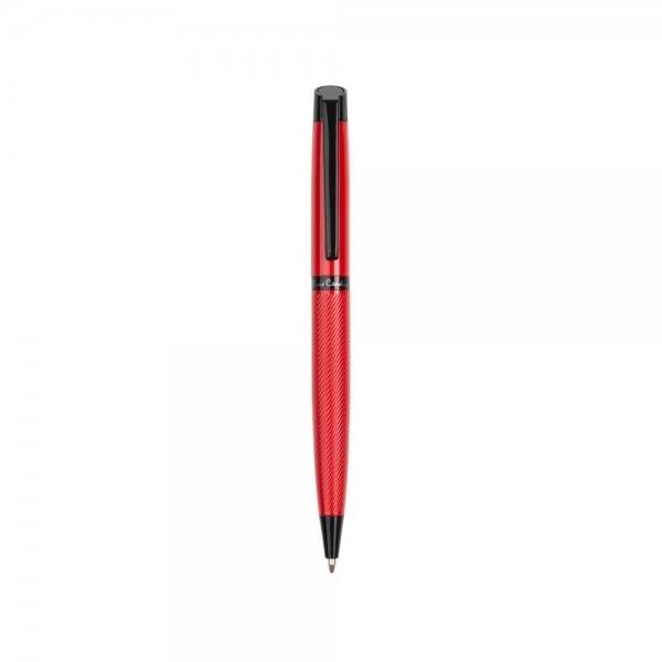 Elegancki metalowy długopis Pierre Cardin. Długopis posiada mechanizm obrotowy, a dolna część korpusu ozdobiona jest strukturalnym wzorem. Posiada wysokiej jakości niebieski wkład z końcówką 1 mm. Zapakowany w luksusową kieszeń, posiada certyfikat autentyczności. Rozmiar: 1,2 cm x 13,5 cm L2 (grawer laserowy): 3,5 x 0,7 cm Kolor: Czerwony
