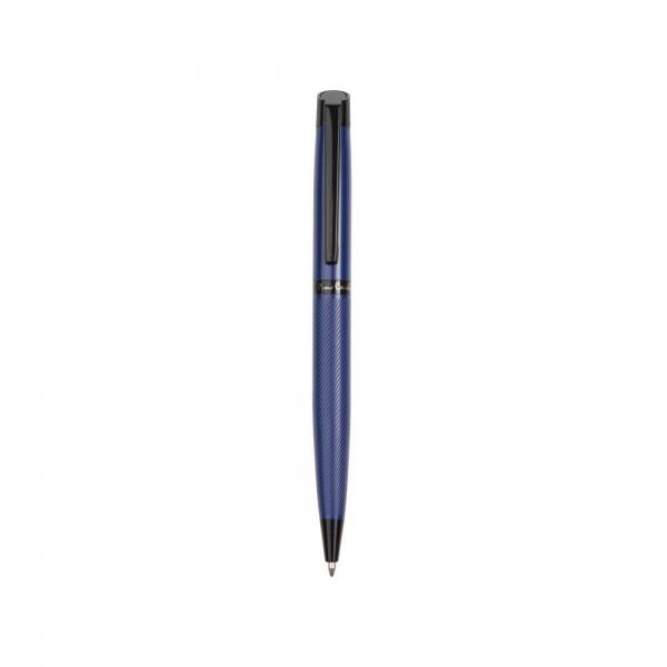 Elegancki metalowy długopis Pierre Cardin. Długopis posiada mechanizm obrotowy, a dolna część korpusu ozdobiona jest strukturalnym wzorem. Posiada wysokiej jakości niebieski wkład z końcówką 1 mm. Zapakowany w luksusową kieszeń, posiada certyfikat autentyczności.